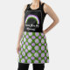 Mittlere Schürze mit einem Bild einer Genderqueer-Stolperflagge und Regenbogen und sich wiederholender nahtloser Blume; grün, weiß und lila, auf schwarzem Hintergrund, mit einer anpassbaren Textvorlage für Ihren eigenen Namen oder Ihre eigene Nachricht
