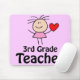 Buntes Schulemousepad hat 3. Grad-Lehrerslogan und einen entzückenden Strichmännchenlehrerentwurf. Vervollkommnen Sie, um herauf den Schreibtisch Ihres Lieblingsdritten Gradlehrers zu erhellen.