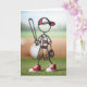 Ein als Baseballspieler gekleideter Strichfigur steht auf dem grünen Gras eines Baseballfeldes und hält einen Schläger und Handschuh zum Baseballgeburtstag. Alle Texte können geändert werden.