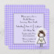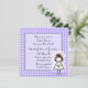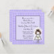 Niedliche Strichmännchen Braut mit Sneakern auf lila-weiß Gingham Muster. Alle Texte können bearbeitet werden.