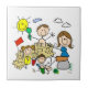 Strichmännchen-Familien-Strand-Spaß Fliese