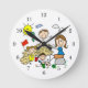 Strichmännchen-Familien-Strand-Spaß Runde Wanduhr