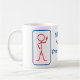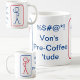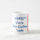Dies ist eine morgendliche "Pre-coffee" 'tude" Tasse mit einem Strichmännchen, das den Mittelfinger auf jeder Seite gibt, eine in Rot und eine in Blau. Es kann mit einem Namen und/oder Ausdrücken personalisiert werden.