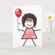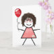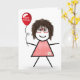 Strichmännchen Girl mit Red Birthday Balloon Karte