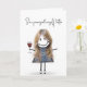 Niedliches Strichmännchen mit Sneakers, blaues Jeans Denim Kleid, Haar, Perlenhalskette und ein Glas Rotwein zum Geburtstag. Alle Texte können geändert werden.