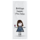 Niedliches Strichmännchen mit Turnschuhen, Haar, blaues Denim-Kleid, Perlenhalskette und Rotwein zum Geburtstag Spaß.