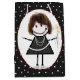 Niedliches Strichmännchen mit Haaren, Sneakers, Polka Dotress und stumpfes Bouquet auf schwarz-weißem Polka Dottern. Kann zum Geburtstag benutzt werden.