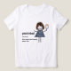 Ein niedliches Strichmännchen mit Haar und einem denim blauen Stechkleid, Sneakers und Perlenhalskette mit einem Pickleball-Paddel mit einer lustigen Definition des Pickleball-Sports.