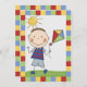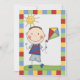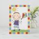 Farbblöcke der roten, grünen, blauen und gelben Grenze ein niedlicher Strichmännchenjunge mit einem Drachen und der Rückseite hat Bereiche, die Sie alle Ihre Partybesonderen auf unserem Strichmännchen-Jungen mit Drachen kundengebundener Geburtstagseinladung leicht hinzufügen können!