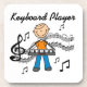 Ein männliches Strichmännchen mit einer Tastatur und musikalische Anmerkungen über Strichmännchen-männliche Tastatur-Spieler-T - Shirts, Hoodies, Tassen, Karten, Aufkleber, Taschentaschen, Schlüsselanhänger, Kissen, Mappen und andere Tastaturspielerkleider- und -geschenkeinzelteile.