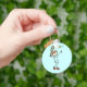Ein männlicher Strichmännchen Tennisspieler auf einem Strichmännchen Men's Tennis Schlüsselanhänger mit hellblauem Hintergrund.