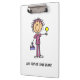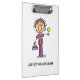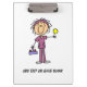 Eine großartige Zwischenablage für Krankenschwestern, mit einer braunhaarigen Krankenschwester in einer lila Uniform, die offensichtlich gerade Blut gezeichnet hat und einen Lollipop anbietet!