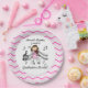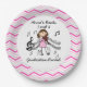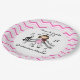 Ein Strichmännchenmädchen-Violinenspieler in einem rosa Kleid auf rosa Zickzack Entwurfspapier-Teller.