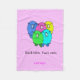 Diese gemütliche Decke für einen Stricker ist mit einem Namen personalisiert, und hat fünf Cartoon Schafe in Rosa, Blau, Gelb, Grün und Türkis, über den Worten "Strick eins. Purl one." Der Hintergrund ist blassrosa.