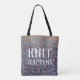 Lustiges Geschenk für Stricker. "Strick geschieht" mit mehrfarbigem Strickhintergrund.