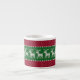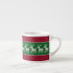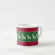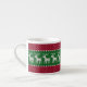 Es ist ein gewebter Pullover-Look - in einem Druck! Ein reich detailliertes Muster mit weißen Rentieren, die über ein grünes Feld ragen, umgeben von einem Weihnachtsrot mit weißen Verzierungen.