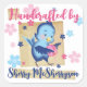 Cutesy-tootsey-Produktaufkleber oder -etikett für Strickereien, Strickhandwerke oder Hobelgarne mit einem kleinen blauen Vogel mit Garnkugel und schwimmenden Blume-Hintergrund, personalisiert mit Ihrer Biz-Info.
