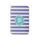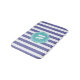 Hübsche und trendige Streifenbadematte in blau violettem Schatten) und weiß gestreiftes Muster mit dem Monogramm in einem abstrakten aquablauen Kreis. Einfach anpassen, indem Sie auf die Schaltfläche Anpassen klicken.