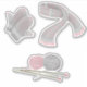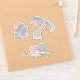 Graue und rote Aufkleber von Fäusten, Schals- und Stricknadeln. Niedliche Aufkleber für Crafter.