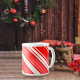 In diesem digitalisierten Foto werden glänzende, silberne, rote und blass-blaue Streifen hervorgehoben, die an die altmodischen, harten Weihnachtsgerichte erinnern, die in dekorativen Zinnboxen verkauft werden.