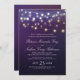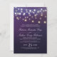 Ein Set von Saitenlicht-Abend-Hochzeitseinladungen mit einer weichen lila Kulisse gegen helle Saitenleuchten und Ihren eigenen Text.