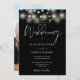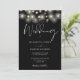 This elegant script black and white wedding invitation, featuring pretty string lights, can be personalized with your information in chic typography with your special photo on the reverse. Designed by Thisisnotme©