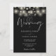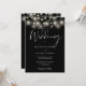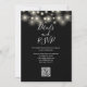 This elegant script black and white wedding invitation, featuring pretty string lights, can be personalized with your information in chic typography with your wedding website details and your QR code on the reverse. Designed by Thisisnotme©