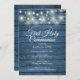 String Lights Blue Wood First Heilige Kommunion Einladung