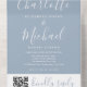 String Lights Dusty Blue Script QR Code Wedding All In One Einladung