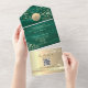 Erleben Sie den Charme unserer eleganten, modernen Hochzeitseinladung. Dieses Design mit einer luxuriösen Mischung aus Gold und rustikalem Holz und smaragdgrünen Akzenten zeichnet sich durch ein Monogramm, Lichter mit Saiten und einen vergoldeten Blumenzauber aus. Personalisieren Sie es mit einem benutzerdefinierten Bild des Paares, und fügen Sie Ihr Foto, Ihre Website und QR-Code für UAWG und zusätzliche Informationen ein.