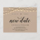Dies ist die moderne minimale saubere rustikale Saitenleuchten, Kraft Design themed, in Black Schriftart, Hochzeitsfeier Einladung Rescheduled (verschoben / verschoben) Postcard (Rett des neuen Datums) . Es ist der perfekte und elegante Weg, um den Zeitplan Ankündigung für Ihre Freunde und Familie zu machen.