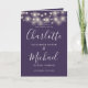 Lila Skript Hochzeitsprogramm mit hübschen Saitenlichtern und schicker moderner Typografie. Dieses stilvolle Hochzeitsprogramm kann mit Ihren speziellen Informationen zum Hochzeitstag personalisiert werden. Entwickelt von Thisisnotme©