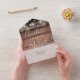 Alles in einer Hochzeitseinladung mit hübschen Saitenlichtern, Mauerkirschen, prächtigen Stilbezeichnungen und schicken Typografien auf rustikalem Holzfußboden. Die Einladung enthält eine perforierte RSVP-Karte mit Wahlmöglichkeiten. Entwickelt von Thisisnotme©