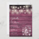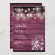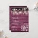 Eine stilvolle rustikale Hochzeitseinladung mit hübschen Saitenlichtern und Maurerkrügen. Die Namen der glücklichen Paare sind Set in einem eleganten Skript über den besonderen Hochzeitsdetails auf einem rustikalen burgundischen Holzhintergrund. Auf der Rückseite befindet sich ein rustikaler Holzhintergrund. Entwickelt von Thisisnotme©