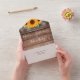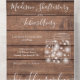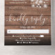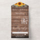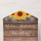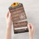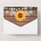 Alles in einer Hochzeitseinladung mit hübschen Sonnenblumen, Streichellichtern, Maurerkirschen, prächtigen Stilbezeichnungen und schicken Typografien auf rustikalem Holzfußboden. Die Einladung enthält eine perforierte RSVP-Karte mit Wahlmöglichkeiten. Entwickelt von Thisisnotme©