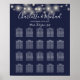 Featuring pretty string lights and signature style names, this elegant navy blue and white seating chart can be personalized with your information in chic white lettering. Designed by Thisisnotme©