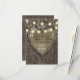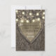 String Lights + Oak Tree Barke Wedding RSVP Cards - mit geschnitztem Herz, Lichtern an der Saite und winzigen, an der Spitze verstreuten binkligen Lichtern. Im Hintergrund befindet sich eine Eichenbarke.