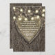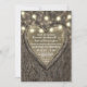 String Lights + Oak Tree Barke Wedding Einladungen - mit einem geschnitzten Herz, Lichtern mit Streicheln und winzigen, an der Spitze verstreuten binkligen Lichtern. Im Hintergrund befindet sich ein Baumrinde-Hintergrund. Die vollständige Auflistung finden Sie unten.
