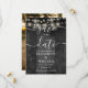 Diese elegante Saite leuchtet rustikal schwarzen Holzstall boho Hochzeit-die-date Karte kann mit Ihren Informationen in schicken Typografie und spezielles Foto auf der Rückseite personalisiert werden. Entwickelt von Thisisnotme©