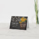 Stilvolle Country Hochzeit Dankeschön Karte mit einer rustikalen schwarzen Kalkboard Hintergrund, String Tinkle Lichter, goldgelbe Sonnenblumen, ein Weingut Holzfass mit Ihren Initialen und ein Stück geknüpfte Kette.