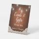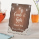 Karten und Geschenke, Danke... Unterschreiben Sie, um Hochzeitsgäste anzuweisen, wo sie ihre Karten und Geschenke platzieren können. Vintage String Lights Mason Jar Lace Wood Wedding Design. Vintages String Lights Mason Jar Lace Wood Theme hat den Charme und den Charakter einer Sommernacht im Freien. Weiche Beleuchtung und Vignettenrahmen mit Ecru-Creme-Spitze tadellos und glänzende Gläser an einer Saite hängen. Perfekte Ergänzung zu einer eleganten rustikalen Saitenlichter thematische Hochzeit. String Lights Rustic Wood Script Guest Book Pedestal Signage