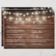 Ein stilvolles rustikales Hochzeitsprogramm mit hübschen Saitenleuchten auf rustikalem Holzfußboden. Fügen Sie Ihre besondere Hochzeitszeremonie Details Set in chic stilvolle Typografie. Handfalten, um ein schönes gefaltetes Hochzeitsprogramm zu erstellen. Entwickelt von Thisisnotme©