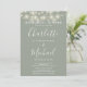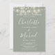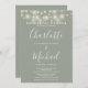 Elegante Salbei-Probe-Dinner mit hübschen Saitenbeleuchtung und Signaturstil-Namen. Diese stilvolle Einladung kann mit Ihren Informationen in schicken Schriften personalisiert werden. Entwickelt von Thisisnotme©