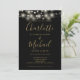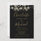 Mit hübschen Saitenlichtern und prägnanten Stilbezeichnungen kann diese elegante Schwarz-Gold-Hochzeitseinladung mit all Ihren besonderen Hochzeitstag-Informationen auf der Vorderseite, Ihren Hochzeitswebseiten-Details und Ihrem QR-Code auf der Rückseite personalisiert werden. Entwickelt von Thisisnotme©
