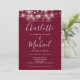Mit hübschen Saitenlichtern und prägnanten Stilbezeichnungen kann diese elegante burgundische Hochzeitseinladung mit all Ihren besonderen Hochzeitstag-Informationen auf der Vorderseite, Ihren Hochzeitswebseiten-Details und Ihrem QR-Code auf der Rückseite personalisiert werden. Entwickelt von Thisisnotme©