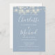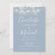 Mit hübschen Saitenlichtern und prägnanten Stilbezeichnungen kann diese elegante dustige blaue Hochzeitseinladung mit all Ihren besonderen Hochzeitstag-Informationen auf der Vorderseite, Ihren Hochzeitswebseiten-Details und Ihrem QR-Code auf der Rückseite personalisiert werden. Entwickelt von Thisisnotme©