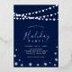 Feiern Sie die Saison mit dieser modernen Fotoleiterparty. Dieses Design besticht durch stilvolle Saitenleuchten, Schneeflocken und die Typografie "Holiday PARTY" auf marinebasischem Hintergrund. Sie können alle Text-, Folien- und Hintergrundfarbe anpassen. Ein tolles Design für ein stilvolles, modernes Weihnachtsabendessen-Party oder eine Firmenfeier.