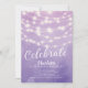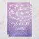 Moderne Saitenleuchten süße 16 Geburtstagseinladung Set auf einem lila Hintergrund mit Aquarelllicht. Sehen Sie sich unsere passende Rückseite für eine besondere Touch an.