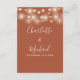 Eine elegante Terracotta Hochzeit Details Informationen Gehäuse Karte mit hübschen Saitenleuchten. Personalisieren Sie mit Ihren besonderen Details Set in stilvoller Typografie und Ihre Namen und Hochzeitsdatum auf der Rückseite. Entwickelt von Thisisnotme©