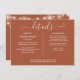 Eine elegante Terracotta Hochzeit Details Informationen Gehäuse Karte mit hübschen Saitenleuchten. Personalisieren Sie mit Ihrem besonderen Event Details Set in stilvoller Typografie mit Ihren Namen und Hochzeitsdatum auf der Rückseite. Entwickelt von Thisisnotme©